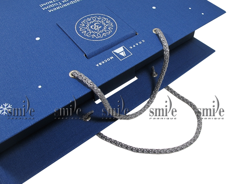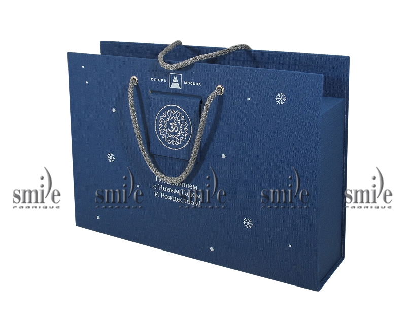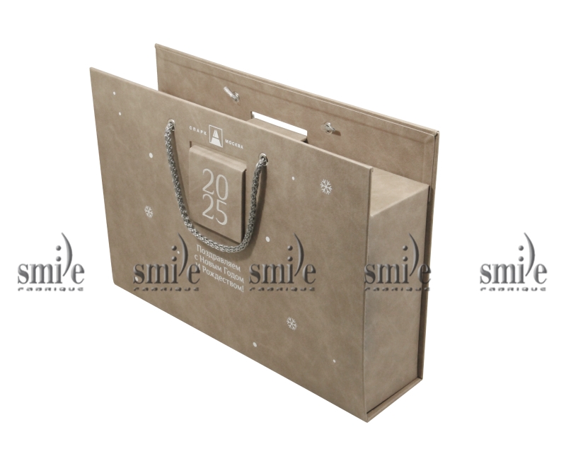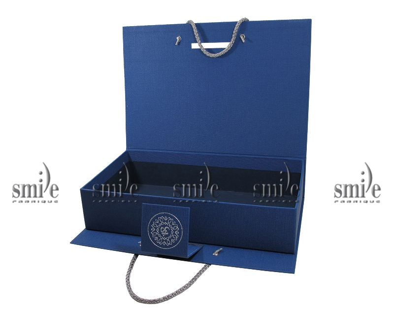Коробка с ручками и магнитным хлястиком из переплетного материала