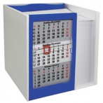 Календарь настольный на 2 года с кубариком; белый с синим; 11х10х10 см; пластик