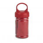 Спортивное полотенце в пластиковом боксе с карабином "ACTIVE", микрофибра, пластик, 30*88 см. красн